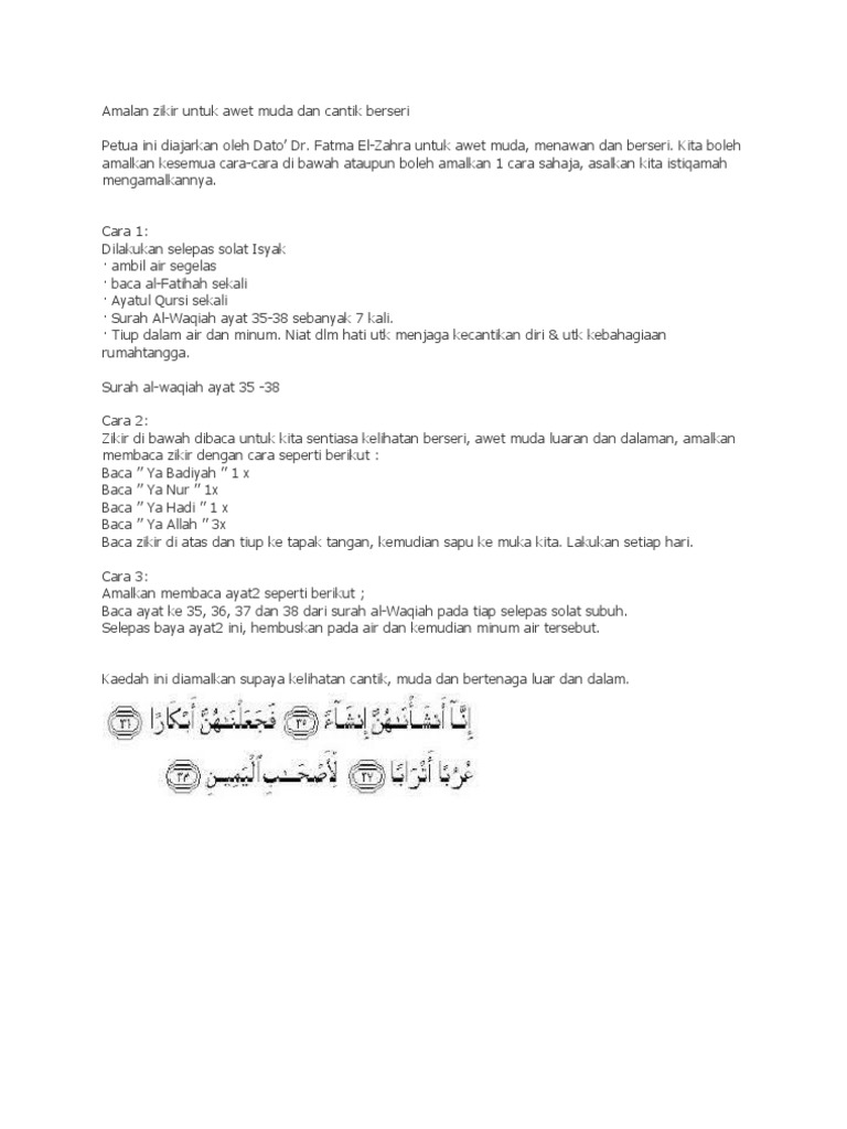 Doa Awet Muda Surah Al Waqiah Ayat L Y G Seri Perawan Ejen Rasmi Johor Suryati Md Aris Facebook