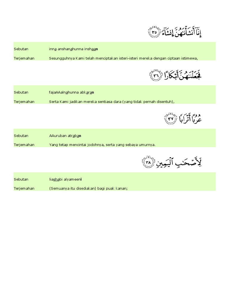 Bacaan Surah Al Waqiah Ayat 35 38 Dalam Rumi