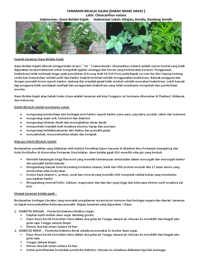 Tanaman Daun Herbal Snake Grass Belalai Gajah Di Lapak Kayyisa Fam Bukalapak