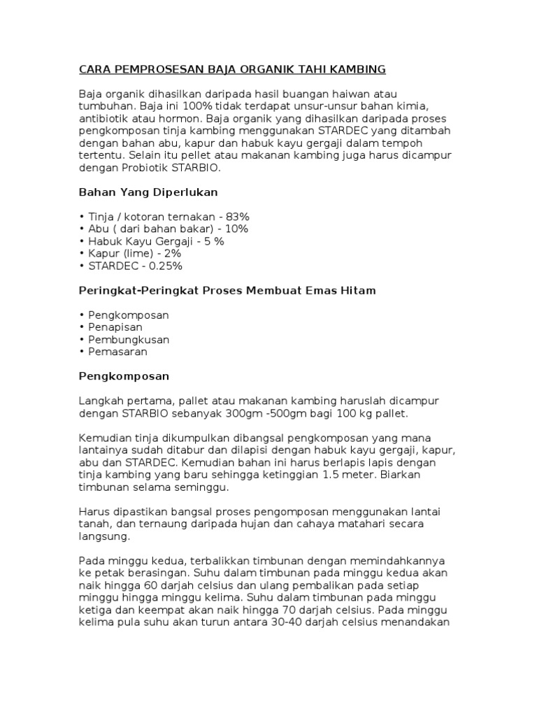 Cara Pemprosesan Baja Organik Tahi Kambing