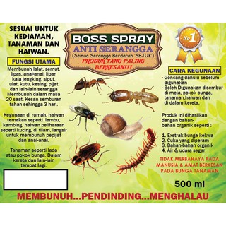 Anti Serangga Organik Spray Serangga Semut Lipas Nyamuk Lipas Lipan Ulat Pokok Pepijat Anai Anai Shopee Malaysia