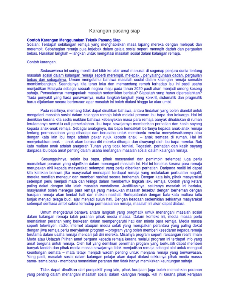 Kaedah Karangan Pasang Siap Karangan Bahasa Melayu Spm Kertas 1