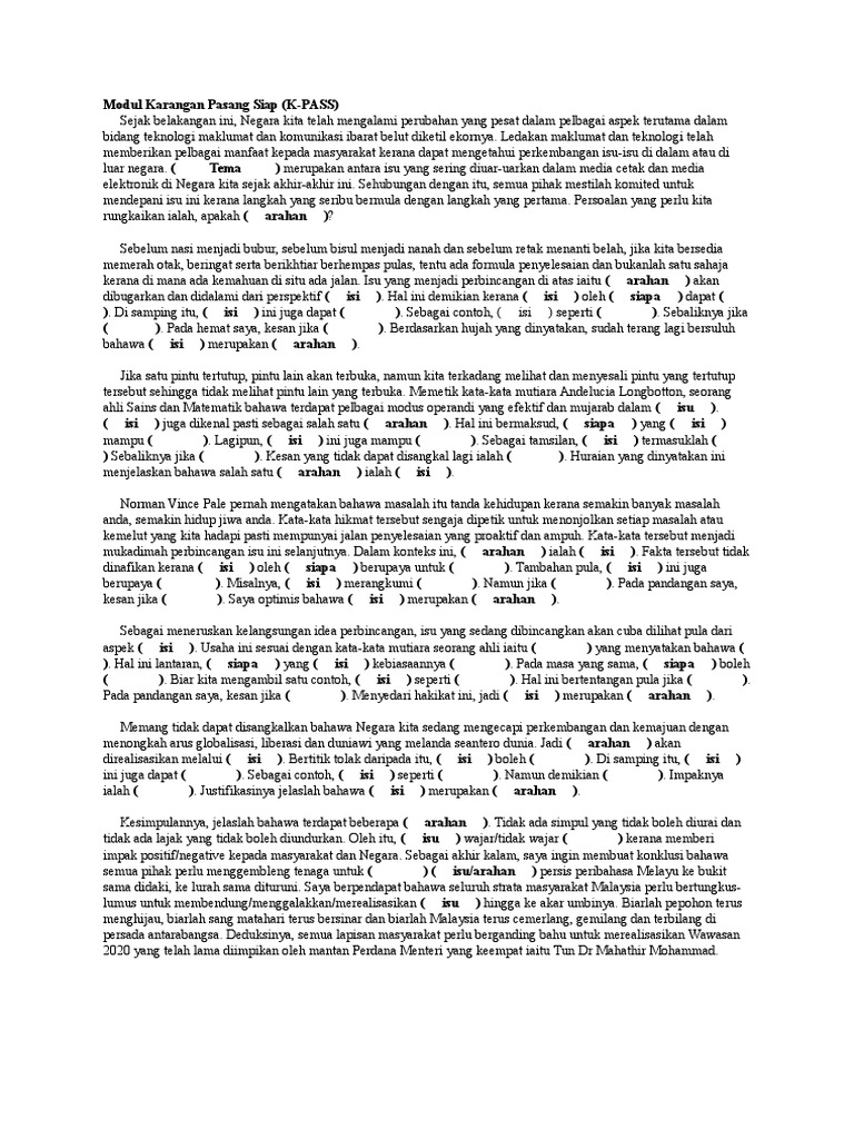 Kaedah Karangan Pasang Siap Karangan Bahasa Melayu Spm Kertas 1