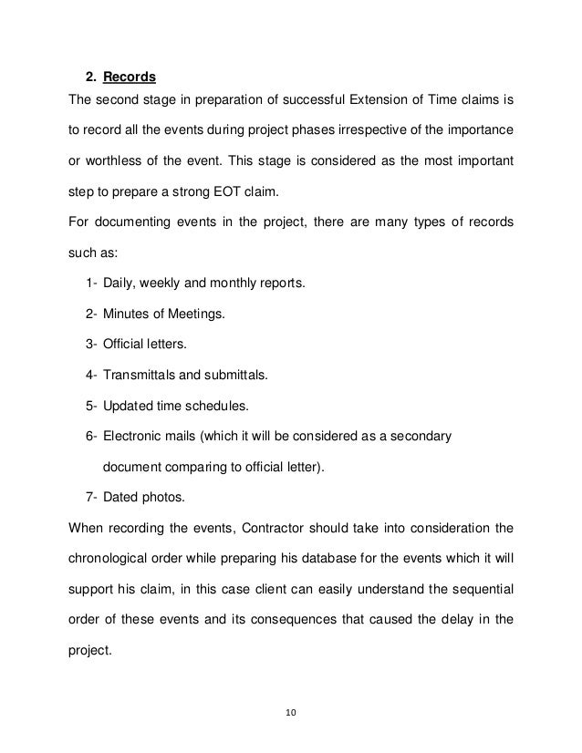 A letter of extension of time is an important document. If the delay is not caused by the contractor then an extension of time eot can be applied. Construction contracts generally allow the construction period to be extended where there is a delay that is not the contractor s fault. Extension of time eot in construction contracts designing buildings wiki share your construction industry knowledge.